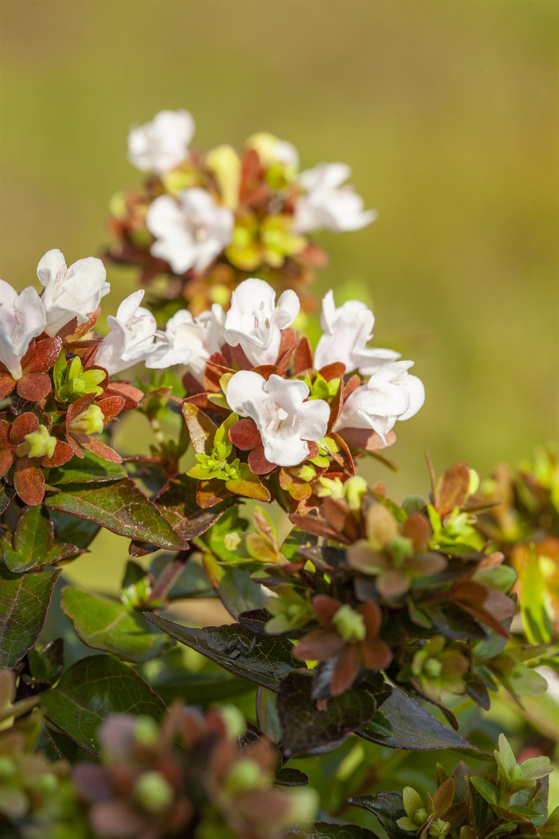 Abelia grandiflora, oorspronkelijk afkomstig uit China, betovert uw tuin met zijn lichte en elegante silhouet, zeer decoratieve glanzende bladeren en weelderige, geurige bloei die de hele zomer aanhoudt.